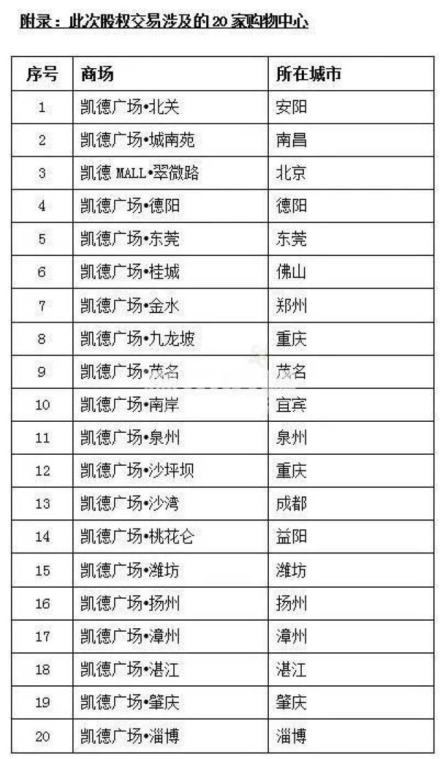 本文来源 | 综合网络 导读:84亿元收购凯德集团20家购物中心,万科股权投资再下一城。 1月5日,凯德集团宣布通过旗下全资子公司凯德商用,与无关联第三方达成协议,向其出售在中国20家购物中心项目公司的100%股权及相应负债,交易价格为17.059亿新元(83.65亿人民币),预计于2018年第二季度完成交易。