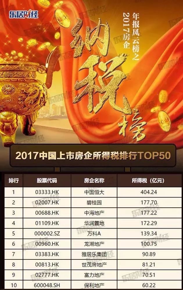 而当一家企业能够主动贡献社会效益的时候,就标志着它开始走向成熟和理性,这也是企业做大做强的必由之路。 值得注意的是,龙湖当年销售总金额同比大增77%,排名上升五个位次,达到第八位。同时,龙湖将要缴纳的所得税首次突破百亿元,同比增长67%,排名榜单第六位。这高出销售排名两个名次的纳税排名,更应该被关注到。 榜单有两个重要信息:2017年中国上市房企所得税排行TOP50的房企,缴纳所得税总额2495亿元,接近全国企业所得税总额8%,说明地产对社会效益贡献大;排名前七名的房企所得税,超过整个榜单总额半数,说明社会贡献和地产行业发展趋势一样,集中度高。 看到纳税排名榜单,一定有人会讶异:没想到规模不算一线房企的雅居乐,纳税却表现积极,社会贡献度颇高。规模已位列行业十强阵营的龙湖,在纳税方面贡献更佳,跻身所得税榜单第六位。 吴亚军曾经的一句表态,也恰恰透露出了龙湖要做经济和社会效益双优生的志向。她说,衡量一家企业的价值,绝不仅仅是看它所创造的财富、企业的市值,更重要的是看这家企业对于社会的贡献大小。企业强大了,就必须懂得回馈社会。 好企业的两个维度 在克而瑞发布的《2017年度中国房地产企业销售TOP200排行榜》中,碧桂园、万科、恒大三家房企销售金额在5000亿元以上。中海地产销售金额在2000亿元以上,而龙湖集团和华润置地则为1500多亿元,分别行业第七、第八、第十位。 过往地产行业对好房企的评价,过度停留在规模代表的经济效益上。而如今有纳税代表的社会效益评价维度,像龙湖、中海、万科等少数的双优生,也开始浮出水面了。 今年4月,龙湖集团及创始人吴亚军女士又通过中国光彩事业基金会发起设立“光彩龙湖教育扶贫专项基金”,宣布自2018年起至2027年,共计捐赠3亿元,用于支持中国教育事业等公益慈善项目,或中国光彩事业基金会选定推荐的相关公益项目。