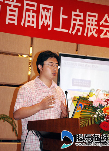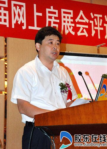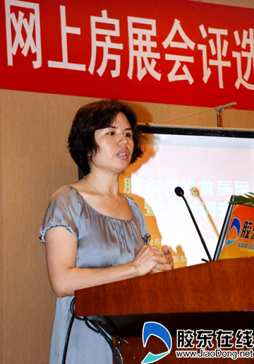 烟台南山置业发展有限公司副总经理于志人代表获奖楼盘发言 房地产开发商、获得经典高端楼盘奖的天马相城销售总监姜绘来表示,与传统媒体相比,网上房展会能够更好地将各楼盘卖点及市民关注点集中展示出来,内容更翔实,时效更持久,图文、视频、多渠道宣传优势明显。因此,他希望通过胶东在线这一平台,能够将“网上房展会”持续办下去,永不落幕。 本网经营中心主任杨淑华介绍网上房展会情况