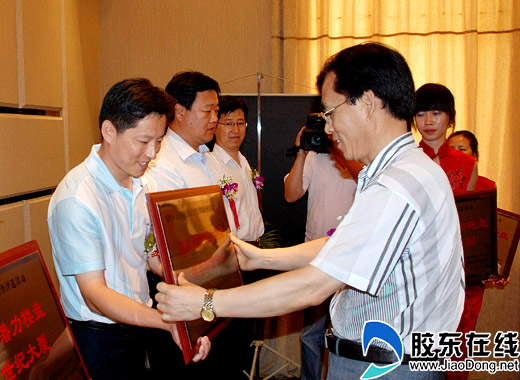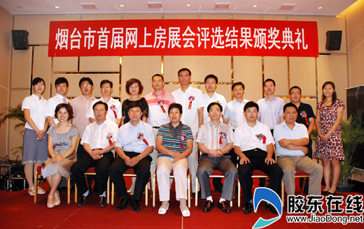 与会人员合影 颁奖典礼上,胶东在线经营中心主任杨淑华向与会嘉宾介绍了网上房展会有关情况,经营中心副主任张涛还就房产频道及网络营销模式的特点及发展趋势做了详细介绍。网络媒体的宣传优势及重要性得到与会者一致认同。 点击进入查看获奖楼盘 本网总编辑邓兆安(中)颁发“经典高端楼盘奖”、“最具投资潜力楼盘奖”、“09年最值得期待新盘奖”并与代表合影 网上房展会为烟台房地产企业提供了全面、系统、多角度的宣传平台,也通过整合资源,为网民看房、选房提供了方便,得到房地产企业和网民高度评价。