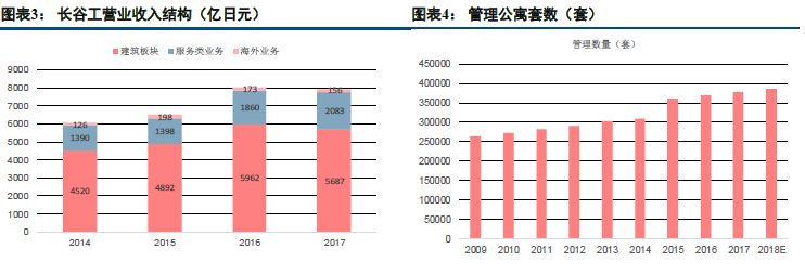 我们早于2015年开始研究物业管理及社区增值服务,2015年《社区O2O:万亿市场空间,得家庭者得天下》和2016年《社区 O2O深度系列之二:构建生态圈,分享共赢》两篇研究报告深度探讨了社区O2O的发展路径与成长空间。站在当前时点回顾,整个物业服务行业的发展也在兑现我们之前的判断。我们在本周发布社区O2O深度系列第4篇,其中从国际角度研究了日本物业管理行业的模式特点。 日本物业服务内容与我国类似,包括了清洁、安保、维修等工作,但其工作更强调计划性和前瞻性。物业管理委员会和业主委员会共同商定出一个长达50年的公寓楼维修计划表,写明具体的施工年份和施工时间。到维修节点时,由物业管理公司提前通知业主委员会开会审核,批准预算,并书面通知所有业主。 由于物业服务产品的无形性和不可储存性,使得业主很难以可感知的方式体验,因此日本推行价格的定期公示制度,管理公司一般公开成本。在收费模式上面,日本有也别于我国的包干制,而是采用酬金制为主,整体物业费包括三部分:1、物业管理公司的利润;2、物业管理公司员工薪酬;3、设备管理及水电费等。征收标准按照市场调节,政府只对自己的公营住宅进行管制。 长谷工(Haseko)隶属于长谷工建设集团,该集团是东京地区最大的建筑商之一,截止2016年底累计建造了约60万套公寓,相当于日本总销售公寓单元的约10%。公司主要业务分为三大板块,分别是建筑业务、服务类业务以及海外业务。公司2017财年整体营收达7723亿日元,其中建筑板块贡献了公司约5687亿日元,服务类业务2083亿,海外业务156亿日元。 公司的物业管理板块归属于服务类业务。截止2018年3月,公司管理的公寓套数总计达37.6万套,为日本管理面积及项目排名第一的物业管理公司。2017年公司传统物业服务板块营收达529亿日元,净利润29亿日元,两者近6年的复合增长率分别达4.13%和6.39%,高于同期日本GDP增速。此外,在人力成本较高的日本,公司传统物业服务的净利润率仍能维持在5.48%的合理水平。近年来公司营收水平和在管数量呈高度相关,物业费水平则略有下降,目前维持在170日元/平方米/月。物业费的稳定与日本较低的通货膨胀率和稳定的人均可支配收入不无关系。 公司2017年管理公寓的数量为37.6万间,员工总人数为1027人,按照70平方米一间公寓计算,人均在管面积达2.64万平方米,远超我国平均的人均在管面积0.6万平方米水平,一方面是源于日本大楼通常配有门锁安保系统,另一方面也源于公司在科技化和智能化的设备投入减轻了对人力的依赖。近年来公司加大了信息化投入,人均在管面积呈稳步上升的趋势。 除了单纯的物业服务,日本长谷工集团在地产相关服务领域的拓展值得借鉴。首先,公司增值服务主要围绕房地产为主,可以有效利用业务协同优势,例如房屋中介、租赁以及翻修业务,借助物业服务的端口优势,精准把握用户需求。其次,从2012年开始,公司的增值业务的规模和业绩贡献大幅增长,尤其是房屋中介业务从2012年的1亿日元大幅增加至2017年的10亿日元,其他诸如租赁、翻修及养老业务2017年净利润达28亿日元,增值业务的业绩贡献已经超过传统的物业服务板块。 房屋中介 公司2013年整合了集团内部资源后,成立Real Estate Inc公司来负责各种房产业态的中介业务。2013年之后每年房屋交易数量和交易金额逐年递增,2017财年房屋中介业务的交易金额达862亿日元,成交1952套。公司中介业务营收从2013年的44亿日元增长到2017年的182亿日元,年均复合增长率高达32.8%。净利润和净利润率稳健提高,净利润从2013年的1亿日元快速增长到2017的10亿日元,2017年净利润率水平为5.5%。 住房租赁 公司租赁业务主要分为三部分,第一部分即公司作为二房东将物业整租,然后转租赚取中间差价,这部分的规模1万间;第二部分为运营租赁性住房,公司从房屋建设初期就介入,扮演管理者的角色,这部分规模占据主导,约8万间;第三部分为外部委托,约6万间,公司通过提供代理出租、代收转付租金等代管服务收取管理服务费。 公司租赁住房规模2018年3月达14.4万间,近7年年均复合增长率约10%。2017年营业收入达330亿日元,净利润19亿日元,相较2010年分别增长48.7%和38.9%,净利润率近年来稳定在5%-6%。2016年公司并表了Sohgo Real estate公司,营收和净利润有了大幅度增长。 房屋维修 在日本的600多万套公寓中,约有150万套房龄超过30年,无论是外部形象还是内部结构都需要进行一定的整理和修缮。通过物业服务,公司和公寓楼建立了较为长期的关系,公司能够更为清晰的把握业主的需求和痛点,也熟知公寓大楼维修中需要注意的事项,此外由于公司作为建筑公司,对于房屋的维修、翻新业务具有天然的优势,因此业务协同作用较为明显。 在过去的20年间,公司已经对3700栋建筑,约50万套公寓进行了翻修及维护工作。2017年,房屋维修、翻新业务营业收入达到356亿日元,较2012年增长58.2%,净利润为8亿日元,较2012年的2亿日元增长4倍,房屋翻修相较物业管理业务利润水平较低。 养老服务 |