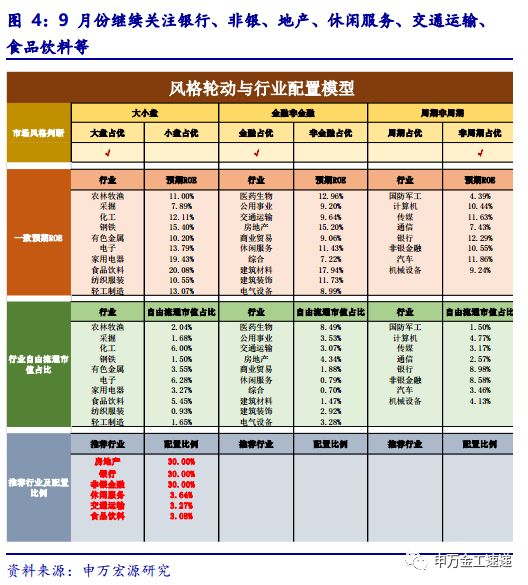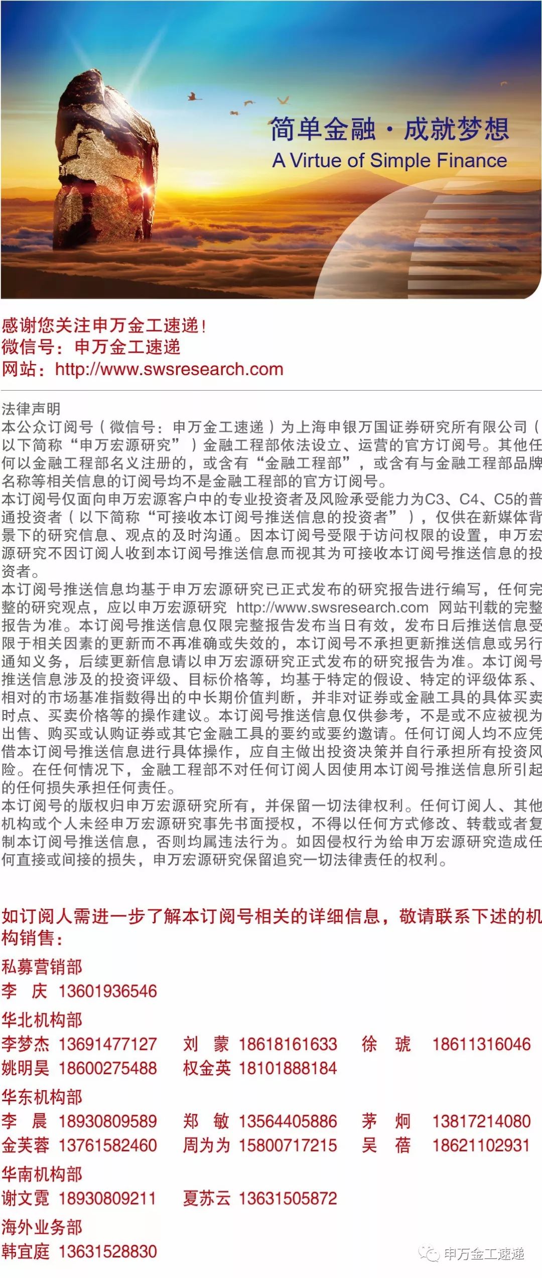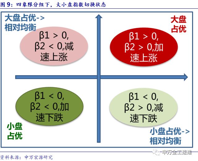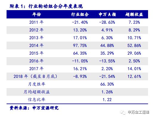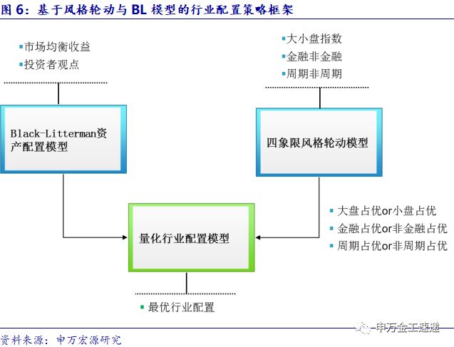 1.八月组合完美收官,跑赢基准3.06% 2018年8月,A股市场萎靡不振,两市成交创熔断以来新低。期间市场普跌,上证综指再次跌破2700点。主要宽基指数中,上证50表现相对较好,下跌2.78%,金工从风格轮动与行业配置相匹配的思路,于2016年开发基于风格轮动与BL模型的行业配置策略,在样本外跟踪表现优异,2017年行业组合相对基准超额收益为14.01%。根据模型结果,8月份配置的主要行业为银行、非银金融、房地产、食品饮料、休闲服务等行业。截至8月31日,8月组合下跌3.65%,跑赢基准3.06%。2018年以来,行业轮动组合绝对收益-8.93%,相对于申万A指超额收益为12.61%。 2.九月份建议继续关注银行、非银、地产、休闲服务、交通运输和食品饮料等行业 根据申万金工风格轮动模型,截止到2018年8月底,主要市场风格中,大盘风格相对于小盘风格占优、金融相对于非金融板块占优。结合市场对各行业2018年盈利预期,模型建议9月份继续关注银行、非银、地产、休闲服务、交通运输和食品饮料等行业。 3.附录:先风格、再行业,行业轮动模型构建思路 我们采用先风格、再行业的配置思路,在确定市场主要风格特征的情况下,结合Black-Litterman资产配置模型构建行业配置框架,具体如下图所示。 对于每一组市场风格,我们都可以利用相同的方法计算其相对强弱指数,以大盘小盘为例,我们分别取申万大盘指数和申万小盘指数作为大盘风格和小盘风格的代表指数,同时对两个指数求累积收益并取对数并做差,即可得到相对强弱指标。 价格相对强弱 = ln(大盘指数累积收益率+1)–ln(小盘指数累积收益率+1) 如下图所示,从图中可以看到,当相对强弱曲线向上运行时,则表明大盘风格占优,向下运行时,表明小盘风格占优。 我们假设理想情况下相对强弱曲线符合正弦波曲线形态,随着大盘指数逐渐走强,其相对于小盘的相对强弱曲线开始加速上升,一定时间后市场预期得以体现,相对强弱曲线开始减速上升,直至达到临界点,开始下跌,市场转向小盘风格。 由于股票指数为离散点位,不具备连续可导条件,因此我们使用移动窗口内线性回归的方法,对导数进行替代,如下图所示:一象限中的大盘小盘相对强弱指数加速上升,大盘风格持续占优,三象限中相对强弱指数加速下行,小盘风格明显占优。 每月末我们分别计算大盘指数相对于小盘指数、金融指数相对于非金融指数(自编)、周期指数相对于非周期指数的相对强弱曲线,并计算其相对强弱曲线的斜率β1,及β1的斜率β2,根据β1、β2将指数状态划分为四个象限,并依此判断市场风格偏向;提取朝阳永续一致预期数据作为主观观点,结合市场均衡收益输入BL模型进行计算,获取后验收益,然后根据市场风格判断进行具体的行业权重约束,通过优化求解得到最终的行业组合权重。 2011年以来,行业轮动组合表现较为出色,月度胜率为66.30%,月均超额收益1.26%,年化超额收益15.13%。 免责声明:自媒体综合提供的内容均源自自媒体,版权归原作者所有,转载请联系原作者并获许可。文章观点仅代表作者本人,不代表新浪立场。若内容涉及投资建议,仅供参考勿作为投资依据。投资有风险,入市需谨慎。 |