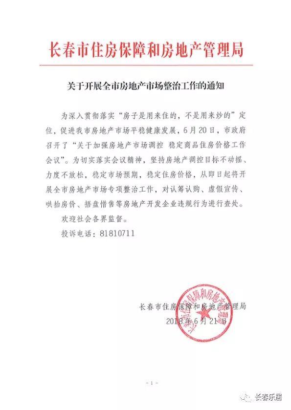 2018年上半年,长春市为积极推动房地产市场的平稳健康发展,让全体人民住有所居,陆续推出了一系列政策,通过这些可以看出政府对房地产市场的良苦用心,对打击扰乱市场秩序等投机行为的决心,下面让我们细数2018上半年长春房地产市场的那些调控政策...... 5月2日起长春限售令正式实施 三环内限售! 长春市住房保障和房地产管理局发布关于落实《长春市人民政府办关于保持房地产市场平稳健康发展的通知》。 通知规定,对自2017年12月29日之后,凡在长春市三环区域新购非家庭唯一住房的,商品住房以商品房备案合同日期为准,2年之内不得上市交易;二手住房自办理转移登记后,2年之内不得再次上市交易。本通知自5月2日起执行。 通知规定,对自2017年12月29日之后,凡在长春市三环区域新购非家庭唯一住房的,商品住房以商品房备案合同日期为准,2年之内不得上市交易;二手住房自办理转移登记后,2年之内不得再次上市交易。 2018年1月17日,长春市人民政府官方网站发布《长春市人民政府办公厅关于保持房地产市场平稳健康发展的通知》。 长春市政府在1月发布的通知规定,凡在长春市三环区域内新购非家庭唯一住房(含新建商品住房和二手住房)的,2年内不得上市交易,时间自合同网签备案或不动产登记之日起计算。 本次长春市住房保障和房地产管理局发文,长春市限售政策正式落地。 5月14日起长春市商品房成交价不得高于预售申报价! 长春市住房保障和房地产管理局下发关于进一步规范商品房预售管理的通知,规定商品房成交价格不得高于预售申报价格。其主要内容为: 一、长春市商品房预售许可申报材料中增加商品房预售价格内容。具体内容按长春市住房保障和房地产管理局提供的标准模式填报。 二、申报价格将在长春市住房保障和房地产管理局政务网()上面向社会公布。 三、房地产开发企业在取得预售许可证10日内,须在销售现场醒目位置,按照申报价格一次性公开全部准售房源价格,明码标价对外销售。 四、商品房实际成交价格不得高于预售申报价格,否则不予网签。 五、2018年5月14日起执行。 6月20日发布楼市调控新通知 严控商品房价格 严打违规销售 为深入贯彻落实“房子是用来住的,不是用来炒的”定位,促进长春市房地产市场平稳健康发展,6月20日,长春市人民政府召开“关于加强房地产市场调控稳定商品住房价格工作会议”,并发布楼市调控新通知。 同时,按照住建部《关于进一步做好房地产市场调控工作有关问题的通知》和省住建厅《关于转发住房城乡建设部进一步做好房地产市场调控工作有关问题的通知》文件的规定,发出了如下有关事项的通知。 一、严格调控商品住房价格。对新申请商品房预售许可证的商品住房,按照房屋成本构成严格审查,原则上不得高于当年首次取得商品房预售许可证时同类项目和周边同等品质项目商品住房的实际销售价格,价格异常的暂停办理商品房预售许可证。支持新建中小户型、中低价位的普通商品住房上市销售。 对已取得商品房预售许可证的商品住房,实际销售价格变动较大和不按相关规定销售房源的停止商品房合同网签备案,并要求限期整改,整改完毕后重新申报商品房预售价格。对已取得商品房预售许可证但价格偏高的商品住房,暂缓办理商品房合同网签备案。 二、严厉打击违规销售行为。对炒作学区房、地铁房、公园房、大商圈等概念,认筹、认购、收取订金、虚假宣传、哄抬房价、捂盘惜售等违规销售行为,从严从重处罚。同时,对违规项目延期半年核发商品房预售许可证。 三、严肃处理不诚信开发建设行为。严格落实房地产开发企业信用评价制度。对违规开发建设、不按商品房买卖合同约定期限办理产权、发生重大质量问题等严重侵害公众利益且拒不改正的房地产开发企业,直接列入诚信“黑名单”,停止商品房预(销)售、限制房地产开发行为。 四、开展全长春市房地产市场专项检查。对全市房地产开发项目逐个进行排查,整治各类违法违规行为,发现一起查处一起,并向社会公布。设立投诉电话,接受社会各界人士监督。 另外,为切实落实会议精神,坚持房地产调控目标不动摇、力度不放松,稳定市场预期,稳定住房价格,从即日起将开展长春市房地产市场专项整治工作,对认筹认购、虚假宣传、哄抬房价、捂盘惜售等房地产开发企业违规行为进行查处。投诉电话:0431-81810711。 附原文内容 关于开展全市房地产市场整治工作的通知 |