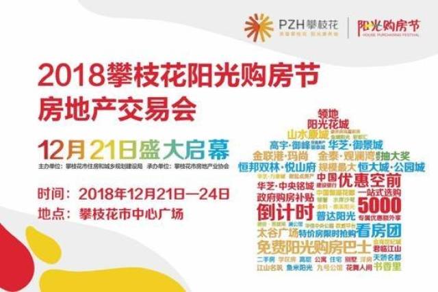 阳光购房巴士·大型看房团,轻松逛展看好房 本次房交会不仅会在攀枝花全域内宣传推广,还将覆盖成都、会理、会东、华坪、永仁等地,同时为了方便群众逛展选房,主办方将于12月22日—23日在米易、盐边、会理、会东、华坪、永仁以及周边重点乡镇、农家乐、康养机构等地方开通免费阳光购房巴士,市民可免费乘坐到达现场。同时,主办方还将在成都组织攀枝花房交会大型旅游看房团,报名参团即可直达房交会现场逛展。 逛展有礼,阳光康养购房俱乐部“一对一”贴心导购 展会期间,主办方除了准备了精彩纷呈的活动外,还特别推出了 “逛展有礼”、“微信摇一摇”、“抢万元现金红包”等互动活动,同时逛展市民在组委会导购服务区扫码关注“康养胜地攀枝花”微信公众号,即可免费领取一份由主办方为大家准备的房交会精美礼品! 本次房交会将首次设立“阳光康养购房俱乐部”,为购房者提供“一对一”的贴心导购置业服务,现场还可免费领取组委会精心准备的攀枝花最新最全的《购房指南》、购房地图等购房礼包。同时,针对外地购房者提供专业的置业导购服务,解决外地人在攀枝花购房存在对攀枝花地理位置不熟悉、购房政策不了解、楼盘项目很盲目等诸多不便。 阳光政务面对面,购房政策零距离咨询 在房交会期间,市房管局、市不动产登记中心、市公积金中心、建设银行等单位,将安排专门的工作人员零距离为广大市民提供面对面政策咨询,体现阳光政务便民服务。 2018攀枝花阳光购房节房地产交易会,将于12月21日火爆开启!年末购房正当时,各大参展楼盘都为广大市民提供了实实在在的优惠,更多房交会动态请关注“康养胜地攀枝花”微信公众号。