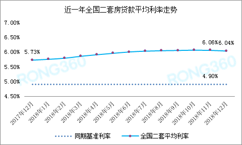 融360监测数据显示,2018年12月北上广深一线城市处于[5.09%,5.57%]区间,北京首套房贷款平均利率为5.45%,较上月回落2BP;上海为5.09%,较上月回落10BP;广州为5.55%,较上月回落7BP;深圳为5.57%,较上月回落4BP。 1.2全国二套房贷款政策变动情况 1.2.1二套房贷款平均利率为6.04% 连续两月回落 图1-8 近一年全国二套房贷款平均利率走势 数据来源:融360大数据研究院 2018年12月全国二套房贷款平均利率为6.04%,较上月回落2BP,已连续两月出现回落,本月二套贷款平均利率环比下降0.33%。 融360监测的35个城市533家银行分(支)行中,二套房贷利率有24家银行执行基准上浮10%,较上月新增3家;有32家银行执行基准上浮15%,较上月新增11家;有225家银行执行基准上浮20%,较上月新增3家;有224家银行执行基准利率上浮20%以上,较上月减少18家。 图1-9 近一年全国二套房贷款利率分布占比 数据来源:融360大数据研究院 融360统计的35个城市533家银行分(支)行中,二套房贷款利率执行基准到基准上浮10%区间的占比为4.50%;执行基准上浮10%以上的占比为91.18%,二套房停贷占比为4.32%,持平上月。 1.2.2二套房首付情况暂未受影响,仍旧稳定 融360监测数据显示,全国533家银行中,二套房执行首付4成的银行共有183家,执行5成、6成、7成以及8成的银行数分别为93家、96家、58家和31家。 表1-2 35个城市二套房主流首付比例一览