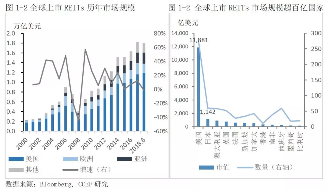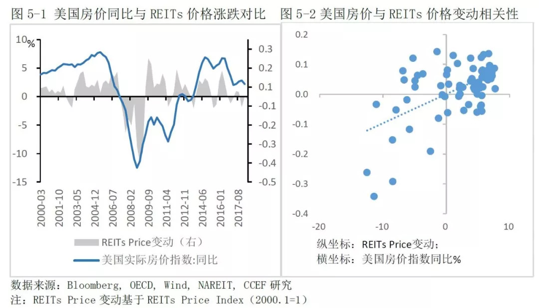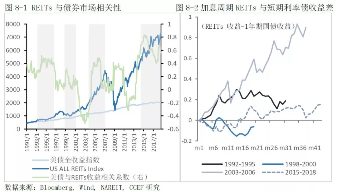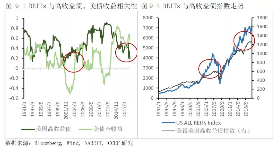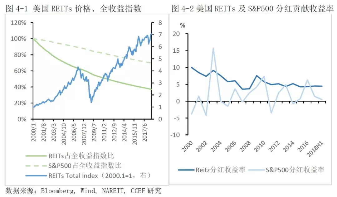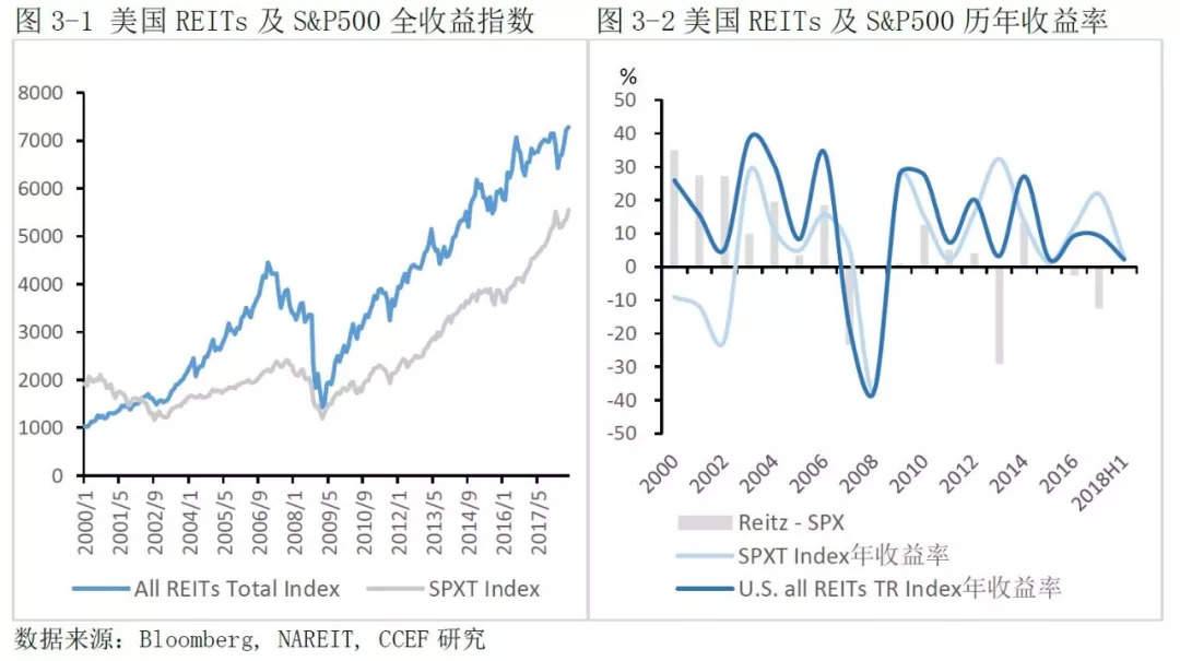林采宜 宋天翼 周俚君/文 核心观点: 2017年全球REITs总规模已超2万亿美元,其中上市REITs占总规模的90%,约1.8万亿美元。美国作为REITs最成熟市场,目前上市REITs总规模为1.19万亿美元,约占全球的65.7%。 REITs收益由价格变动及分红所组成,持续稳定的分红收益是REITs总收益保证稳定的关键,近年来持续稳定在4.5%-5.5%的水平。 REITs与债券类资产(利率债)的相关系数为0.22,REITs与权益类资产的相关系数为0.51,因此,作为一种组合资产,REITs可在一定程度上对冲权益类、债券类资产风险。 一、海外房地产投资信托(REITs)市场 1、最近十年全球REITs增长迅速,美国规模占全球六成以上 作为房地产投资的替代品,房地产投资信托(REITs)是大类资产配置中用于平衡组合风险收益的重要另类投资品。2008年至今,全球上市REITs规模年复合增长率达17.8%,截至2018年8月,全球上市REITs总规模为1.8万亿美元。 自1960年诞生以来,目前全球已有37个国家或地区设立相关法规并建立REITs。美国作为REITs最成熟市场,无论在数量上还是规模上均占全球主导地位,截至2018年8月,美国上市REITs估值1.19万亿美元,占全球REITs总规模的65.7%。 2、权益型REITs占市场主导地位,是资产配置的主要选择 海外REITs按经营模式可分为权益型、抵押型两类,前者直接持有不动产,租金是其主要收入来源;后者将资金通过借贷给房地产开放商,或购买抵押贷款、抵押支持证券,以赚取利息为主要收入来源。海外REITs发展早期,市场主要以抵押型为主,但随着时间推移,目前权益型已占主导地位,规模比例占总量的96.8%。 权益型REITs标的较为多样化,市场整体业务类型分布较为均匀,由于以稳定租金作为主要收入来源,其收入波动性比抵押型REITs更稳定,是配置REITs资产的主要选择。以美国为例,上市REITs主要业务类型中,零售、住宅、办公、医疗保健、基础设施5种业务类型分布均匀,共占总规模的62%(2017年数据)。与此同时,从典型上市REITs历年净利润来看,抵押型REITs的波动较大,使得该类REITs资产的整体风险收益不如权益型REITs。 二、海外REITs收益特点及影响因素(以美国的数据为例) 1、稳定分红是REITs的收益基础 REITs收益由价格变动及分红所组成,在绝大多数年份,其年度收益高于美股普通权益资产。数据显示,在过去的18年中,美国REITs年收益率仅有4年低于以标普指数代表的权益类资产,此外,在2003-2007、2009至今两轮股市上涨周期中,投资REITs的年化收益分别为32%、23%,而同期投资标普指数则为17%、21%。若是以含分红再投资的全收益指数为标准,在两轮上涨周期中,投资REITs的累计涨幅分别为200%、420%,而同期标普累计涨幅分别为90%、350%。 事实上,持续稳定的分红收益是REITs总收益保证稳定的关键。通过比较美国REITs价格、全收益指数的走势,我们发现,投资REITs取得的高收益主要是由其持续分红并再投资贡献,尤其在REITs价格上涨周期中,这部分再投资的累计分红进一步放大了总投资收益。若以2000年投资REITs计算,至今仅有约40%的比例属于股价部分,而同期投资标普指数该比例约为70%。实际上REITs持续稳定的分红,一方面得益于分红的税收优惠政策,另一方面由其经营模式中稳定的收入作支撑。数据显示,自2000年以来, REITs分红收益率基本稳定,近五年来维持在4.5%-5.5%的水平。 2、房地产周期和REITs收益存在显著的正相关 从基础资产的角度看,房地产价格波动通过影响REITs所持有资产的估价,进而影响REITs价格。数据显示,REITs价格(不含分红)与房价指数同比增幅成显著正相关,进一步根据回归结果显示,实际房价同比上涨/下跌1个百分点,对REITs的基准价格影响为0.97个百分点。 事实上,美国房地产价格波动周期对租金涨跌影响并不明显。数据显示,2000年以来美国住房租金的年增长率处于约3%的上下区间,仅在2008年金融危机期间,增长率降至0附近,但也未出现租金的显著下跌。而REITs全收益指数的变动略微滞后于房价指数;由于租金收入较为稳定,使得REITs价格波动的幅度要远远小于房地产价格。 3、利率、经济环境共同影响REITs的分红收益 数据表明,利率的变化和REITs的的分红收入之间存在较弱的负相关性,利率下降,经营成本下降,利率上升,经营成本也随之上升,但利率上升通常伴随着经济快速增长,REITs的经营收入也会相应上升,因此,利率变化对REITs分红收入有影响,但影响较弱。这也是当前REITs分红收益仍保持稳定的原因。可以说,利率、经济环境共同影响REITs的分红收益。 综合而言,投资REITs不但要考虑房地产价格走势对REITs价格(不含分红)之间存在较强的相关性,而且利率和REITs分红之间存在弱的负相关性。因此,REITs的波动幅度大大小于房地产价格的波幅。 三、REITs与债券、权益类类资产的相关性分析 1、REITs与债券类资产的相关性 REITs稳定分红的特点类似固收类产品,但从REITs与债券市场整体收益表现来看,两者收益率的相关系数不高,过去30年均值仅为0.22。然而在加息周期中,与“配短避长”的债券投资策略而言,REITs是短期利率债更好的替代品。在过去4轮加息周期中,以投资1年期美债与REITs全收益指数衡量的收益看,除加息周期最短的1998-2000外,其余3轮相对较长的加息周期中,投资REITs实现年均至少额外5%的收益。 事实上,REITs整体价格走势与债券市场中的高收益债更为相似,或者说REITs与高收益债收益率的相关系数更高,过去近30年均值为0.50,且历年均为正