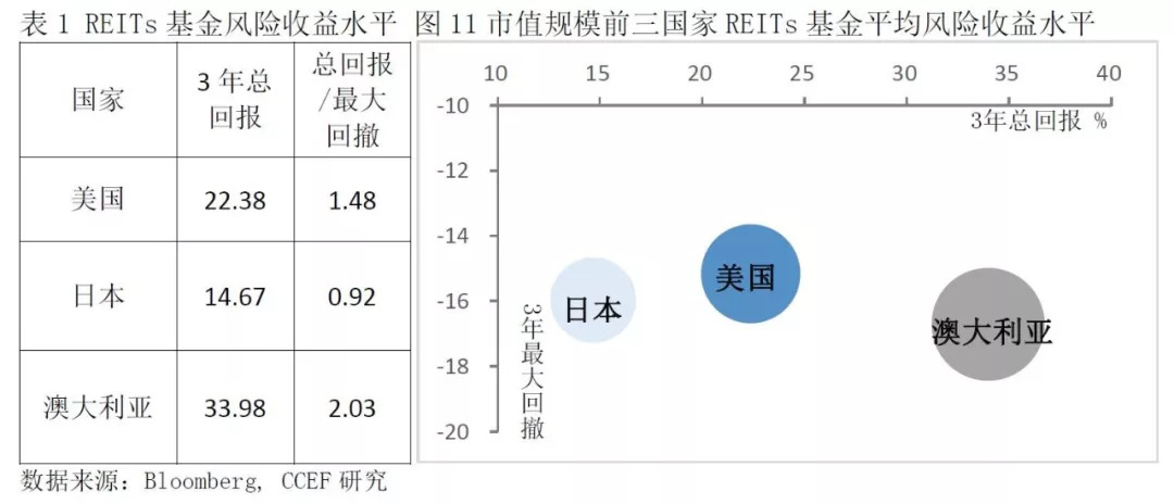 REITs价格走势受房价、利率、经济周期的共同影响,其中房价是相关性最高的因素。由于房地产价格与资本市场其他资产的相关性相对较低。因此,长期来看,REITs与普通权益资产的相关性也普遍较低。在过去30年中,REITs与标普指数衡量的美国权益类资产收益相关系数均值为0.51,大大低于资本市场的其他权益类资产。因此,配置REITs在某种程度上可以作为权益资产的对冲组合。 四、海外REITs基金业绩比较 从全球REITs市场来看,海外REITs基金最近3年(2015.8—2018.8)总回报均值约为23.97%,期间最大回撤平均在15.84%,回报/最大回撤比值为1.51。海外REITs市场规模最大的三个国家分别为美国、日本、澳大利亚,选取具有代表性15只REITs基金的平均表现,作为衡量该市场整体的风险收益情况。数据显示,美国作为全球最大的REITs市场,其REITs基金近3年表现稳定,总收益约为22.38%,处于海外REITs基金收益表现的平均水平;澳大利亚市场整体规模虽较小,但其具有更高的收益回报,且作为衡量风险的回报/最大回撤比值仅稍高于美国,可作为除美国外海外REITs基金投资的优质选择。 本报告不代表华安基金的投资策略或投资建议。转载请在文章标题下注明作者及出处。 免责声明:自媒体综合提供的内容均源自自媒体,版权归原作者所有,转载请联系原作者并获许可。文章观点仅代表作者本人,不代表新浪立场。若内容涉及投资建议,仅供参考勿作为投资依据。投资有风险,入市需谨慎。 |
