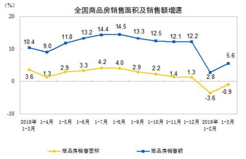 中新网4月17日电 据国家统计局网站消息,国家统计局今日公布2019年1-3月份全国房地产开发投资和销售情况。 2019年1-3月份,全国房地产开发投资23803亿元,同比增长11.8%,增速比1-2月份提高0.2个百分点。其中,住宅投资17256亿元,增长17.3%,增速回落0.7个百分点。住宅投资占房地产开发投资的比重为72.5%。 商业营业用房 2271 -15.1 3月末,商品房待售面积51646万平方米,比2月末减少605万平方米。其中,住宅待售面积减少531万平方米,办公楼待售面积减少47万平方米,商业营业用房待售面积增加21万平方米。 其中:住宅 25954 -0.6 东北地区 960 0.3 768 6.3 其中:住宅 24678 -15.4 其中:住宅 17256 17.3 (亿元) 同比增长表32019年1-3月份东中西部和东北地区房地产销售情况表22019年1-3月份东中西部和东北地区房地产开发投资情况