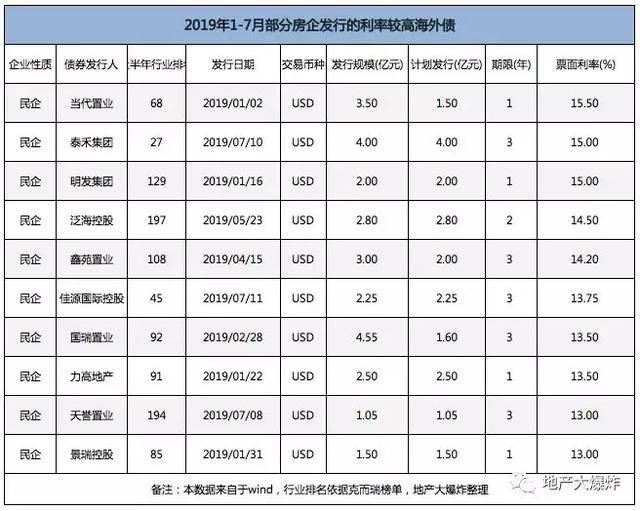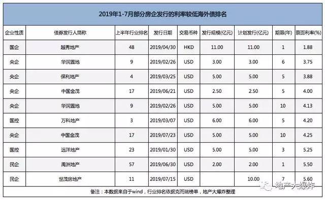 利率高的都是不够红还很激进的。 当然也有利率低还不红的,比如禹洲,爱分红的禹洲上半年发行了一笔利率5.5%的优先票据,民企中利率最低的,但在榜单中却到了第11位。 禹洲利率居然比世茂还要低,出乎很多人的预料,除了其相对稳健,或许还与央企华侨城成为其二股东有莫大关系。 融资成本低了,即使地价拿高了别人也会羡慕; 融资成本高了,再拿高价地,别人只会说疯了。 前两年疯了的房企,在眼下没有一个过得好的,都在努力给融资成本低的房企送项目。 贰|待遇 在所有的融资渠道中,银行开发贷是房企最青睐的融资方式,因为融资成本基本上就是基准利率。 今年以来,监管层对房企的融资收紧,对给房企钱的金融机构也在收紧。 融资渠道层层收紧,许多房企哪怕是top级房企也不得不更多的依赖于融资成本较高的信托和美元来融资。 不过,融资收紧的是他们,对有些国资背景的房企来讲似乎并不存在。 一些国资背景的房企不仅可以在银行里拿到开发贷,还是基准利率九折的开发贷。 有政府背书,银行也更愿意贷款给有背书的房企。 资本是逐利的,也是避风险的。 即便是在被普遍认为所有制差异相对较小的债券领域,民企发债的标准费率也比国企要高。 当然,对很多民企来说,债能够发出来就不错了。 发不出债的银亿,刚刚申请破产重组了,创始人从宁波首富速降到宁波首负。 今年上半年,要领人民法院破产文书的小房企在排队呢。 叁|拿地 7月15日,北京丰台区造甲村,土地出让。 因为不限价,这块地吸引了中海、合生创展、首开+城建+保利+建工,金茂+宝龙+骐骥等十余家房企竞拍。 被预测胜率最大的金茂落选了,上半年拿了很多土也王的中海将改地块收入囊中,总价79.4亿元,年内北京总价土也王。 在土拍竞争中,合生创展与中海斗得难舍难分,最后无奈败北。 土地市场,最终还是钱说了算。 合生创展其实是败给了中海雄厚的资金实力和低廉的融资成本。 今年上半年合生创展发行海外优先票据的利率是7.5%,中海是2.9%。 能在造甲村这样总价高、单价高的地块中抉逐,合生创展本身已经是个斗士了,能斗到最后更是个例外。 如今的土拍市场,重要地块已越来越变成拥有国资背景房企的角逐。 与一些房企发债续命不同,如此低廉的融资成本事实上也在“逼迫”着中海去拿地。 今年上半年,中海还陆续在北京、南昌、东莞、苏州、厦门五个一二线城市斩获土也王地块。 不只是中海,在上半年的土拍市场中,华润、保利、万科等房企都出尽了风头。 至于某些在榜单上冲锋陷阵的房企,在土地市场上,已经更习惯于陪跑者和旁观者的角色。 肆|周期 拿地,虽只是房地产开发投资的前端行为,但土储规模与结构是实现高效布局、提高市场竞争力的重要基础,对房企未来的业绩和规模却有重大影响。 在马太效应凸显的房地产行业,规模是关乎房企生存的问题,从近几年房企的拿地情况,我们就能对他们未来的发展情况一窥端倪。 复盘近十年地产行业的每一轮周期,我们可以看到: 2009年,在经济危机之下,房企十强中,拥有国资背景的房企曾占据了大半壁江山,当时冯仑曾建议民企尽快转型为混合所有制企业。 2015年-2016年上半年亦是如此,市场上超过50%的高溢价地多是被央企或国企拿走,当时金茂、首开、华润、保利等多家房企表现积极。 这一轮周期同样,从去年下半年开始,拥有国资背景的房企又开始在大手笔的买进。 通过近十年的复盘,我们基本可以得出结论:每一轮行业深度调整,都是国资背景房企向上发力实现弯道超车之时。 至少,我们可以大胆的判断一点,中海似乎要崛起了。 伍|退路 不管是融资还是拿地,与逆周期共舞的国资背景房企和与在刀尖上跳舞的民营房企都形成了鲜明的对比。 当然,我们也可以说,最难熬的是前几年高周转、高负债、高杠杆,经营不善的房企。 房地产行业发展至今,已是一个非常市场化的行业,无论如今身处何境,都是房企逐利的结果,这些都是正常现象。 因此,在这轮行业洗牌中,我们看到: 有如华夏幸福这样的top级房企,因遭遇资金链危机伐,先是出卖两成股权给中国平安,又将环京项目出卖给万科,断臂求生求出路。 也有如银亿这样的中小型房企,因负债累累不得已申请破产重组。 虽然惨烈,但这都是市场化的行为,在市场竞争之下,任何市场主体都有进或退的可能性。 不过,总有一类房企退路似乎多了些: 比如天房发展,在出现债务风险时,天津市其他国有企业向它提供资金支持,同时当地有关部门也计划将它旗下的数宗商业用地变更为住宅用地。 陆|渐变色 对于政府、国企、民企之间的关系,冯仑曾做过调侃: 政府是大家长,国企是正房妻子,民企就是二房和三房,以娱乐和补充生养为主。 他鼓励民企向国企靠拢,因为只有与国资结盟,民企才能在资金来源、土地获取、财务成本上取得此前无法企及的资源优势。 就拿绿城来说,背靠中交之后,其体制、机制、发展走向究竟如何还不得而知,但它在融资渠道、融资成本、土地市场、资本市场上的优势,已不可同日而语。 因为,近期有业内人士透露:绿城于7月11日申报提交上去的一笔45亿元公司债券报告已于7月16日就获得上交所批准。 在融资渠道层层收紧之际,这样的消息,放在嗷嗷待资金哺育的地产圈该有多震惊。 要不要 震惊之余,很多房企也在思考一个问题:要不要染红。 碧桂园染红
