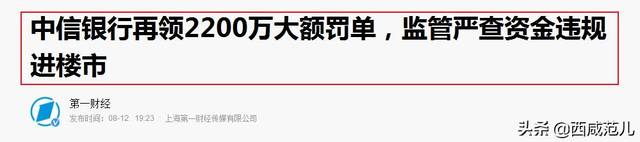 ▲图片来源于网络 值得一提的是,2019年,是房地产融资最艰难的一年。 自今年5月银保监会下发“23号文”以来,地产融资渠道步步收紧,信托、海外债、银行贷款、开发贷、ABS等监管新政频出。货币宽松向信用宽松传导之时,监管部门更希望资金流向实体、小微企业等领域,而非房地产。 公开媒体报道,8月9日,中信银行就因为违规给房企贷款等13项违规行为,被监管层处以2223.7万元的罚款。