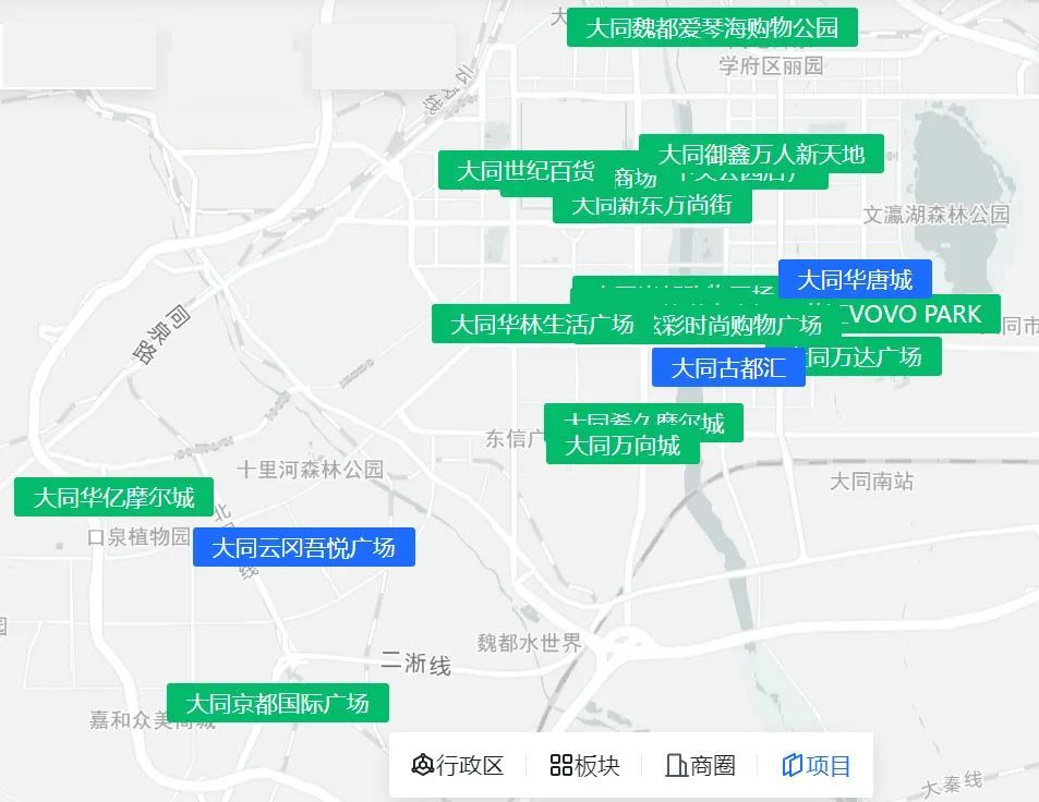 大同商业项目分布(来源:城市商业地图)据统计,大同已开业3万㎡以上购物中心只有7家,总体量44.6万平方米,在全省各大城市中仅比长治多;10万㎡级别的购物中心只有两家。在分布上,大同几乎所有的商业项目都集中在平城区,商业布局极不均衡。云冈区作为2021年大同市地区生产总值最高的行政区,已被确立为大同城市“两轴三城”发展规划重点区域,但是与举足轻重的经济地位相比,云冈区的商业配套却显得较为落后。此前云冈区只有两家小型购物中心,难以满足市民的购物休闲需求。大同云冈吾悦广场一举填补了云冈区购物、餐饮、娱乐、休闲、社交等复合功能于一体的城市综合体空白。