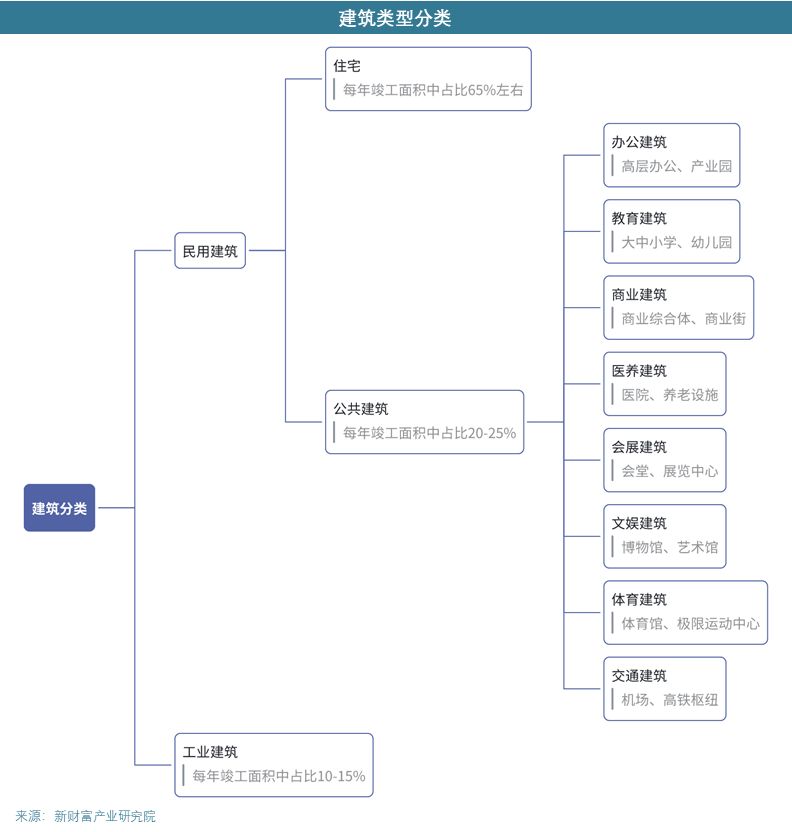 建筑类型与赛道选择建筑房地产产业前景设计公司往往会有各自所擅长的建筑类型,而不同的建筑类型遍布我国生产的各行各业,各行各业的繁荣程度反过来会给不同建筑设计公司带来有差别的业绩影响建筑总体可分为民用建筑与工业建筑工业建筑体量相对较少,占15%左右,该领域较为封闭和稳定,受大环境影响较少。