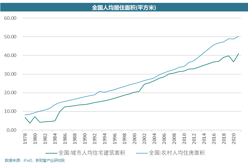 值得一提的是,目前我国城市人均住宅建筑面积在2021年已经达到41平方米,而农村人均住房面积已经达到50.2平方米相较于2000年左右的20平方米,人均居住面积已经大幅提升2019年东亚国家的人均住房面积中,日本33.5平方米、新加坡30平方米、韩国28平方米,而欧洲的英法德城镇人均住房面积常年在40平方米左右,此外,美国地广人稀,人均住房面积为67平米。