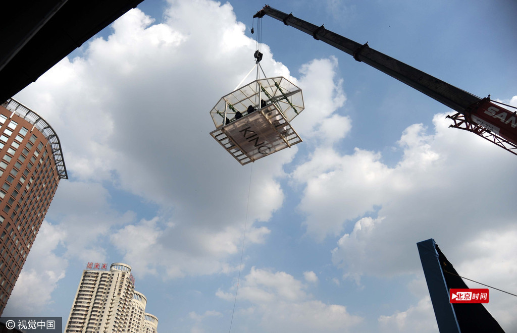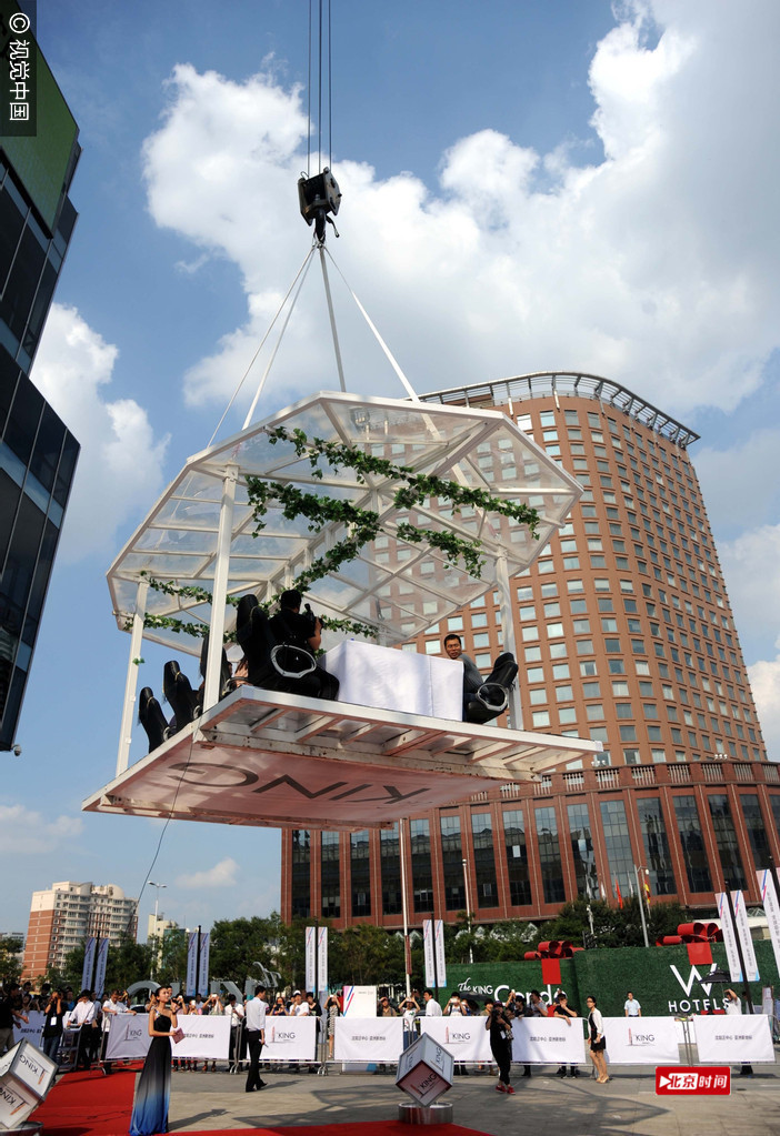 辽宁省沈阳市,青年大街一商业楼盘,市民在离地面高50米的“空中餐厅”体验刺激的悬空用餐。 沈阳市铁西区一虾店开业请来比基尼美女助阵为顾客上菜扒虾。美丽的比基尼女郎遭到食客的围观拍照。 |