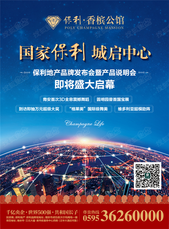 保利·香槟公馆,36万㎡央企国际生活大城 “和南安 共成功-保利地产品牌发布会暨产品说明会”即将盛大启幕,届时将有南安首次3D全息震撼舞蹈、圆明园兽首国宝展、“格莱美”国际级舞美、维多利亚超模助阵等倾城钜献,到访还可参与抽万元超级大奖,央企保利邀您体验一次无与伦比的极致产品巅峰首映! 保利会入会直破两千,品牌发布会即将盛大启幕