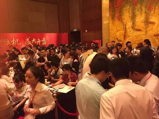 * 天纵开盘现场全景 12天认筹超1400组 3000人挤爆开盘现场 1小时狂销4.5亿 开盘现场到底有多火热?9月24日,新天地中心·天纵盛大开盘,位于海外海皇冠大酒店闻秋厅的会场,到场客户远超预期,接近3000组。偌大的会场座无虚席,有相当一部分购房者,不得不站着等候选房。
