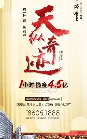 * 天纵开盘现场,不少购房者打电话紧张探讨 开发商营销工作人员则表示:“杭州并不缺少酒店式公寓,尤其是新天地版块,但面积、户型结构大多雷同。新天地中心·天纵则拿出了十分的诚意,在产品打造上走到了 “套路”之外。如在传统居住功能之外,将生活服务体系融入建筑空间,垂直设置TOP ZONE空中会所,雅致咖啡、阳光花房、瑜伽练习室、私人会客厅等生活服务进驻天纵,层层都有不同享受。同时,天纵导入的绿城园区生活服务体系,也成为天纵产品价值的最好加持。因此,天纵的热销也在预想之内。” 4.79米层高新奢华LOFT 60方可变三房、50方独立双套房 新天地中心·天纵的产品密码 当然,除了交通、配套等外部因素,新天地中心·天纵的热销,也离不开出色的产品本身。