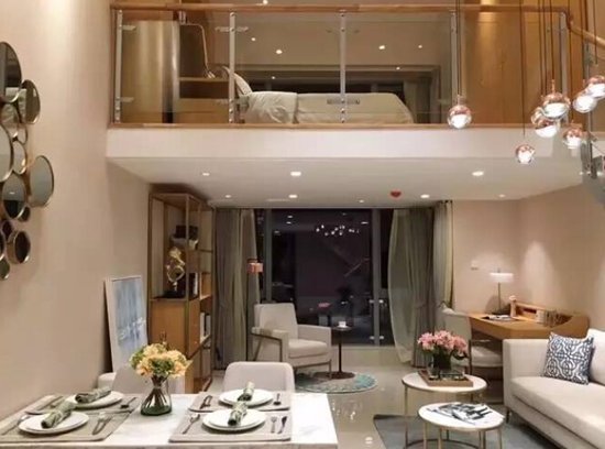 * 天纵约60方样板房实景 其次,天纵产品的设计,功能多变,自住投资皆宜。比如,60方户型,一层为挑高公共会客空间,二层为阔奢双主卧私密设计。得益于4.79米的极限层高,即便是1.8米的大个子,站在二楼也会有舒适的居住体验。一层的会客区,可以根据使用需求,增加一个新的功能空间。上下两层可独立开窗、4.35米超大面宽、可变空间,这一切都为业主的未来生活提供更丰富的可能。50方双套房设计,入户后一二层完全独立,分别出租可以带来双份收益,对比区域非地铁上盖物业每月4000+的租金水平,倍受投资客的青睐。