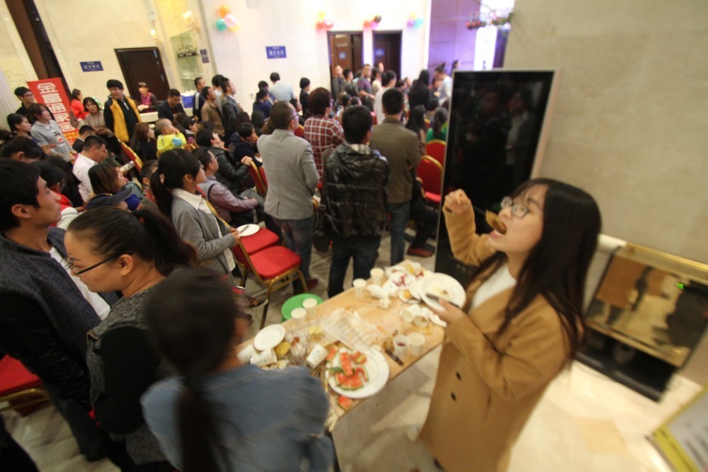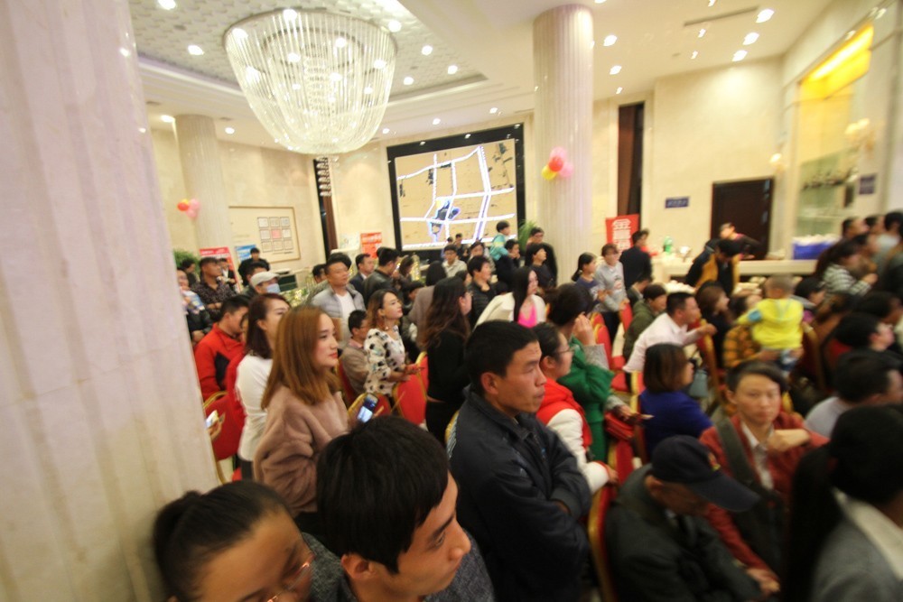 2016年10月25日,山东滨州中海西岸,一楼盘举行晚间生日派对,上千平米售楼大厅瞬间爆满。(民声供稿平台 发)