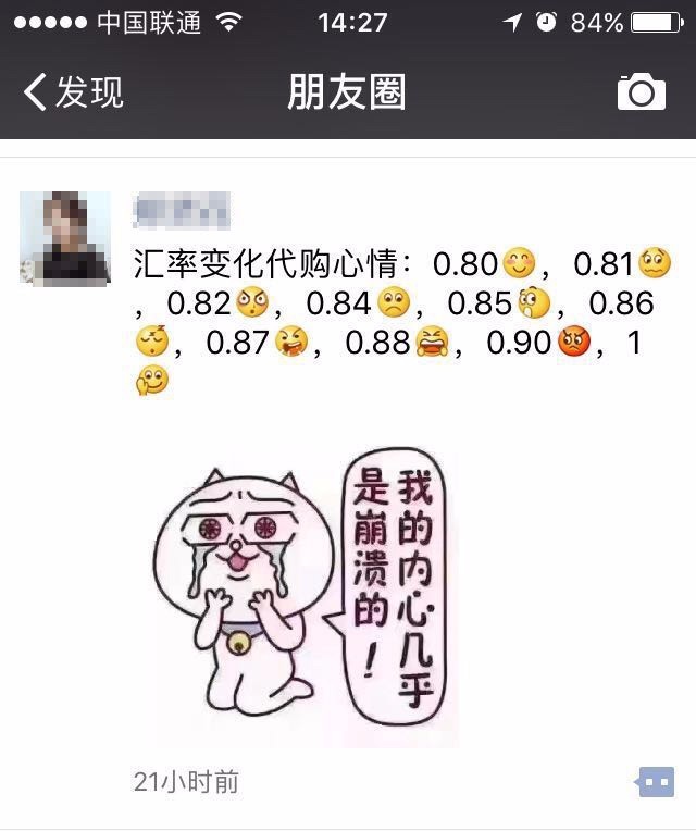 近日,小编的朋友圈被一大波香港代购这样刷屏: 截止2016年11月18日00:00:05,离岸人民币兑美元报6.8927。美元指数一度突破100.57,刷新日内所创逾十三年新高。